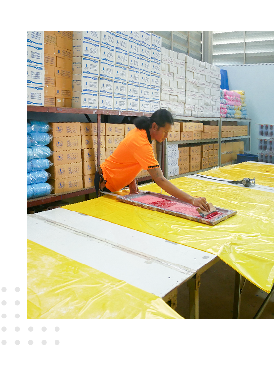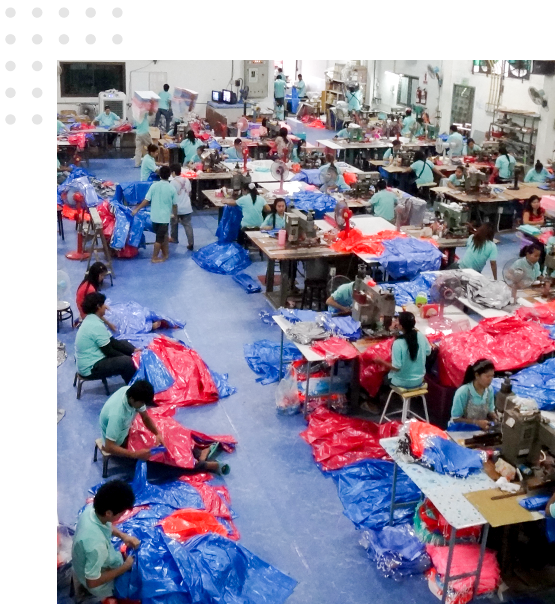 Today, we are well renowned as the leader among manufacturing plants of rainwear and baby bed sheet in Thailand who possesses genuine expertise and comprehensive line of production that meets export standards. Moreover, we have extended our product line to respond to different needs, such as Magic Pants, suit cover, apron, packaging, etc., which are marketed with the trademarks: “Rainny”, “Classic” , “Classic Rainwear”, “Classic Rainsuit”, “Classic Poncho”, “Cale” , “3LIONS” and so on.
